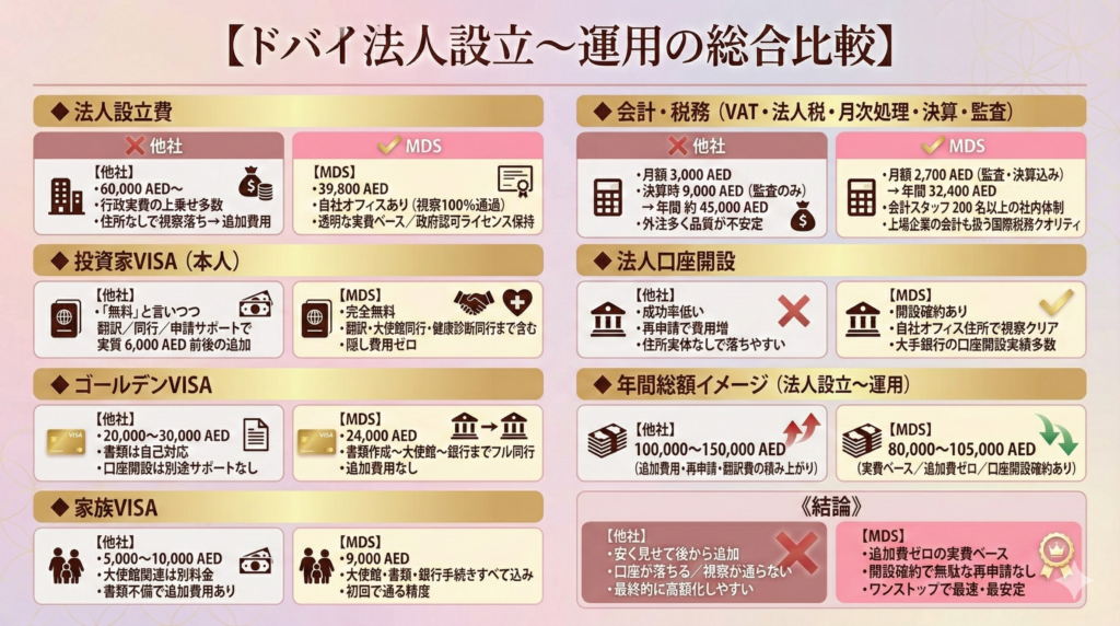 他社:5,000〜10,000 AED(書類準備は別料金)